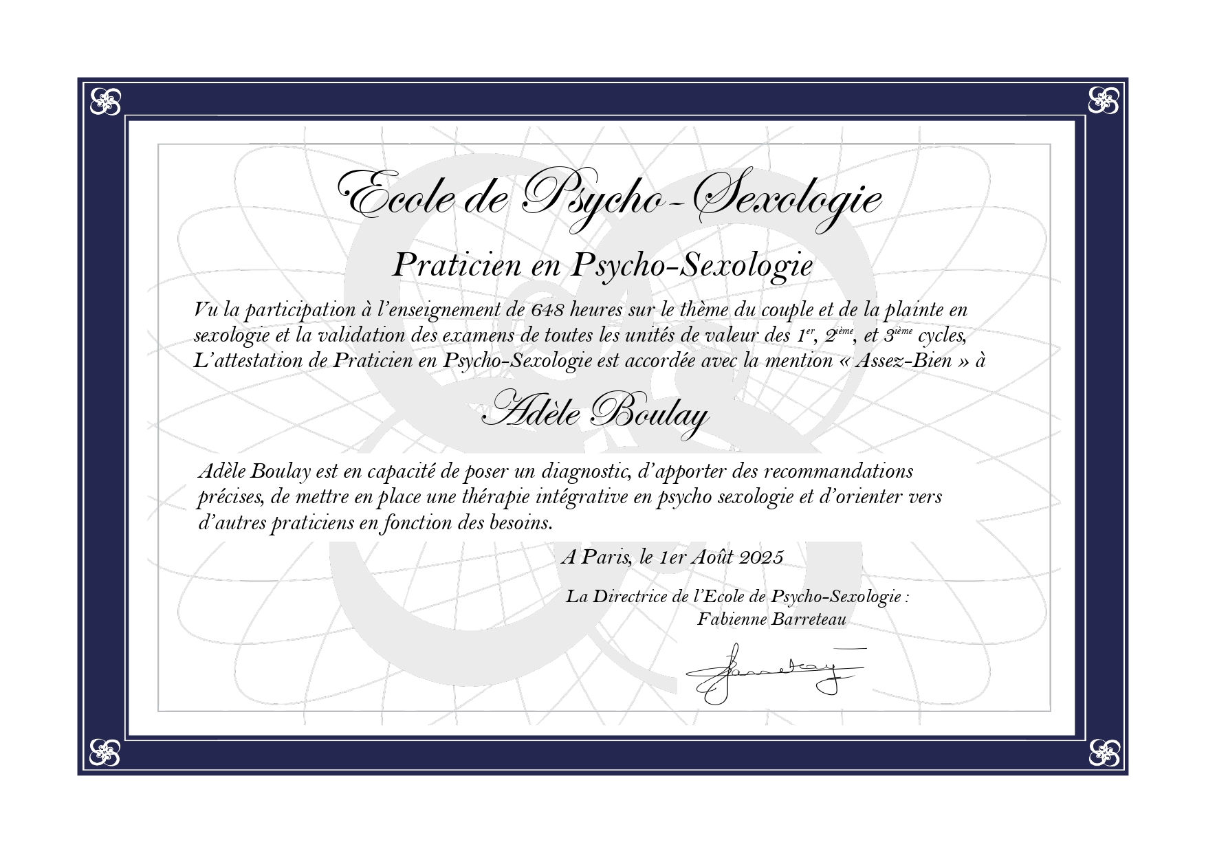 Je suis praticienne en psycho-sexologie et hypnothérapeute. J’accompagne les personnes et les couples confrontés à des difficultés sexuelles ou relationnelles. Désireuse d’aider au mieux mes patients, je me forme continuellement et je propose également un accompagnement autour de l’affirmation de soi, de la gestion du stress ainsi que de la grossesse et de la parentalité. Vous pouvez prendre rendez-vous même si c’est flou, confus ou difficile à formuler. Il n’est pas nécessaire d’avoir une demande claire ni un objectif défini. Une première séance peut simplement servir à déposer ce qui est là.